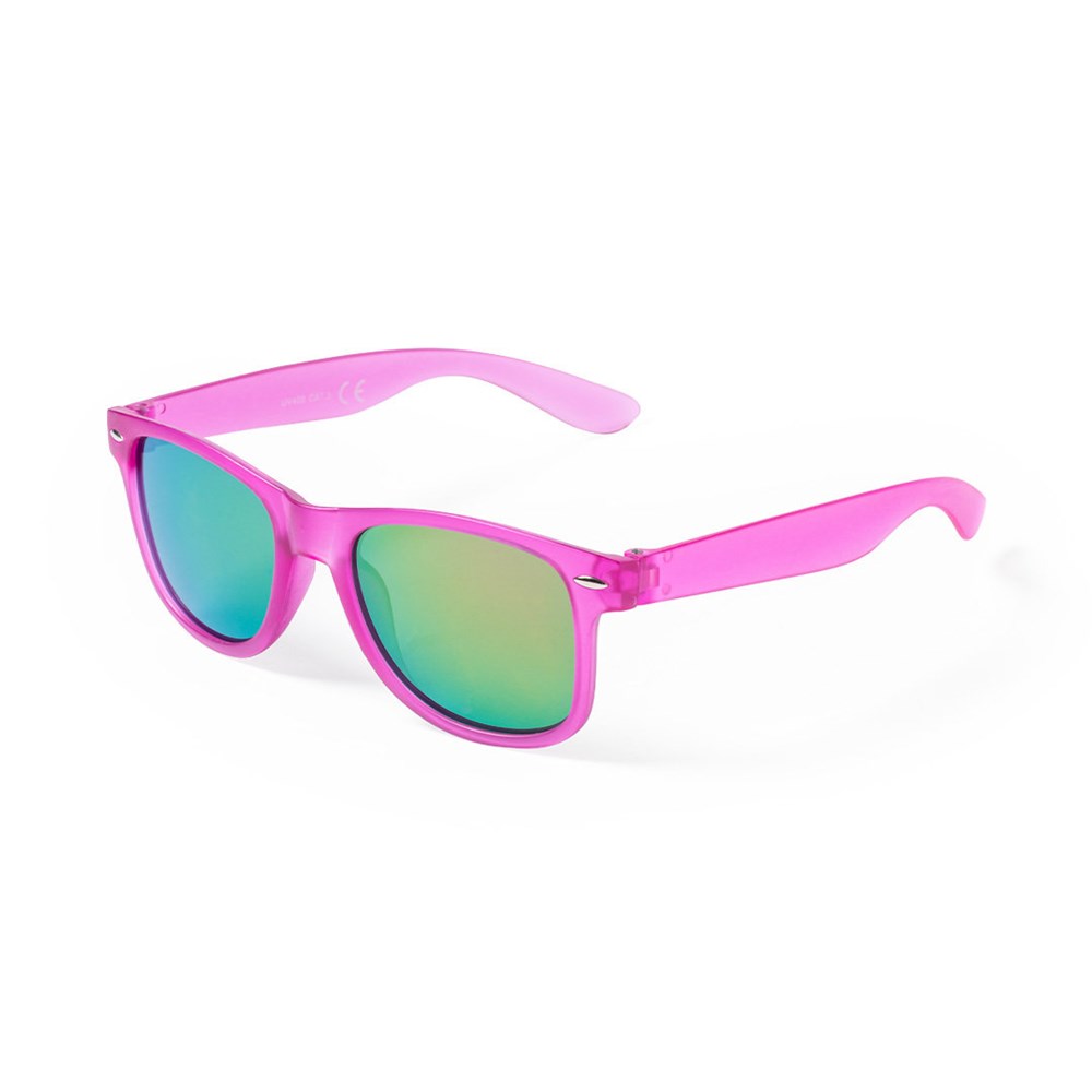 Zonnebril met UV400-bescherming in klassiek ontwerp. Met een doorschijnend frame in leuke kleuren en gespiegelde glazen in bijjpassende kleur.