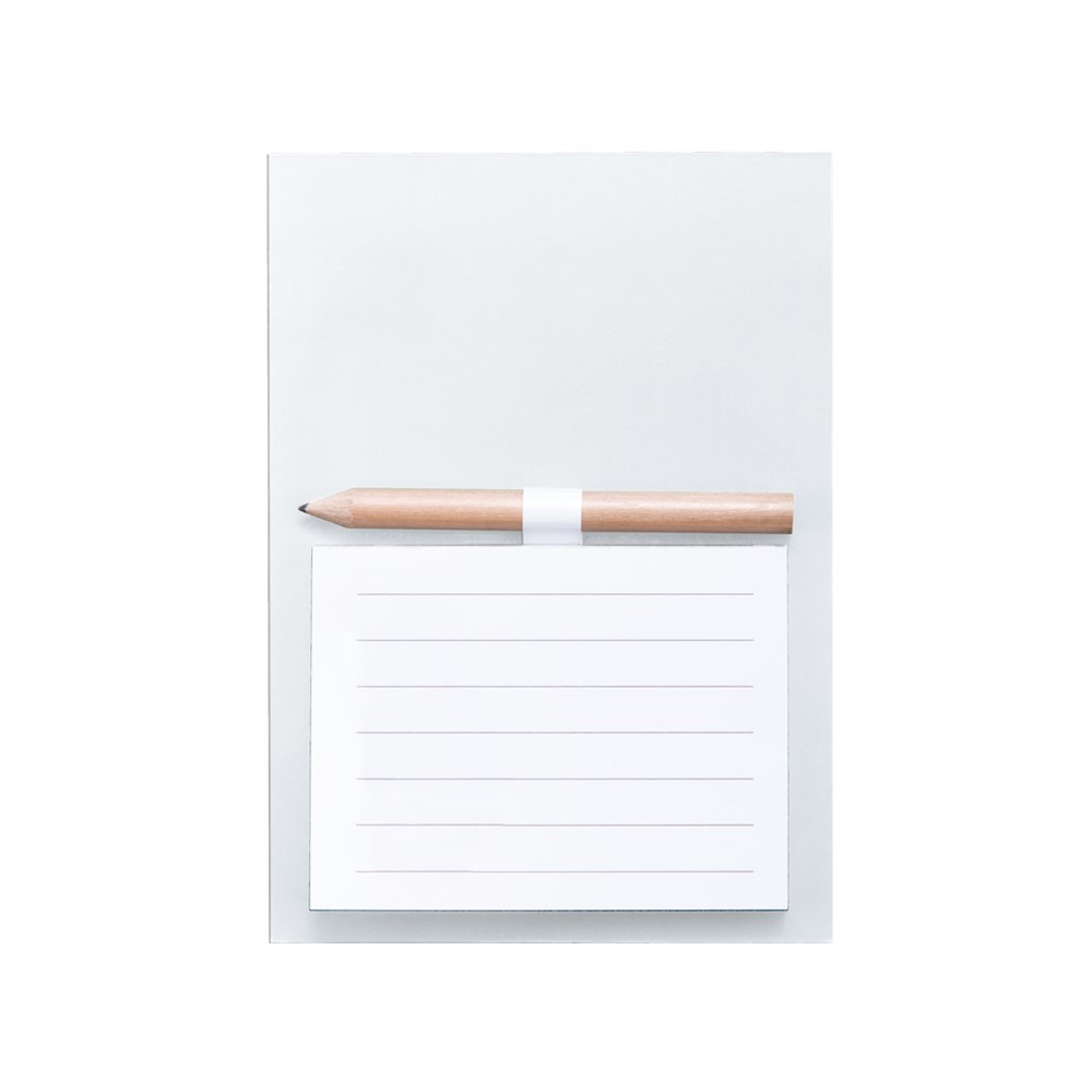 Magneetblok van stevig karton in kleuren. 40 gelinieerde bladzijden, met potlood en houder.