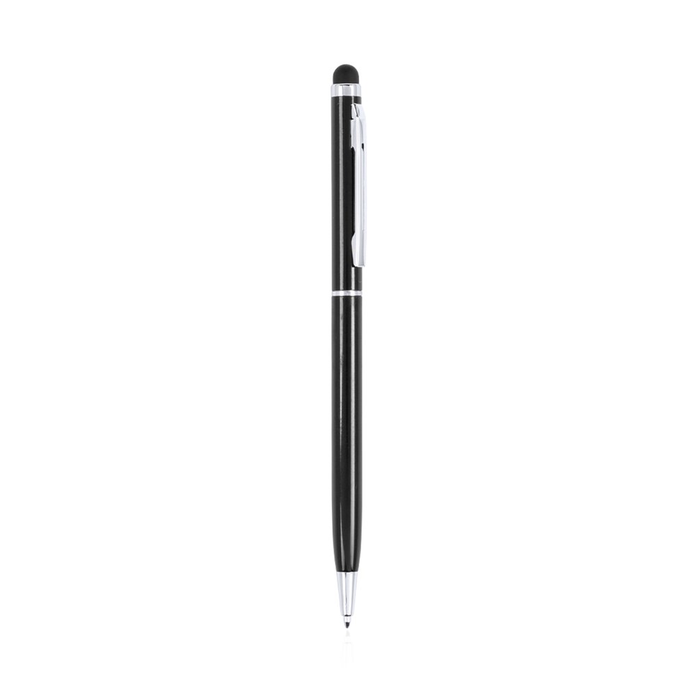 Stylus balpen met draai-mechanisme en aluminium body met gladde, metallic afwerking in gevarieerde kleuren en stylus in bijpassende kleur. clip en ringen in zilveren kleur. Blauwe inkt.