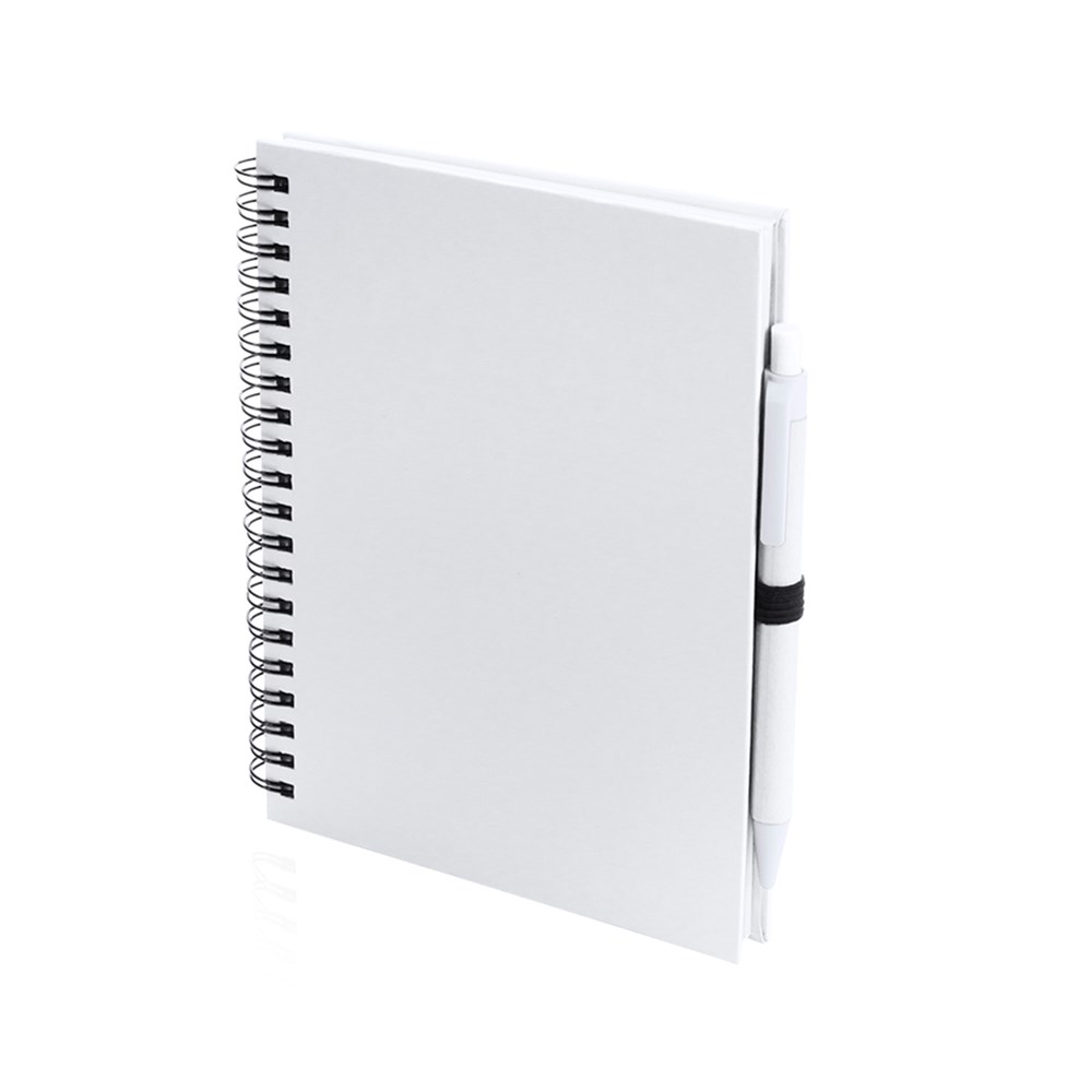 Notitieboek en pennenset. Ring notitieboekje met zacht aanvoelende kaft van gerecycled karton, en...meer