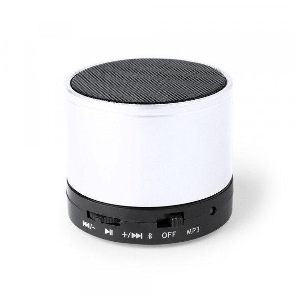 Compacte luidspreker met Bluetooth® 5.0-verbinding EN 3 W vermogen. Handsfree-functie, sleuf voor mini-SD-kaarten met een capaciteit tot 64 GB, FM-radiofunctie en Aux-in via 3,5 mm jack-aansluiting. Met antislip rubberen pads op de basis. Compatibel met iOS en Android, inclusief oplaadkabel en 3,5mm jack AUX-kabel. Geleverd in een aantrekkelijke designdoos, met gebruiksaanwijzing in het Engels en Spaans. Verkrijgbaar in een groot aantal metallic kleuren.