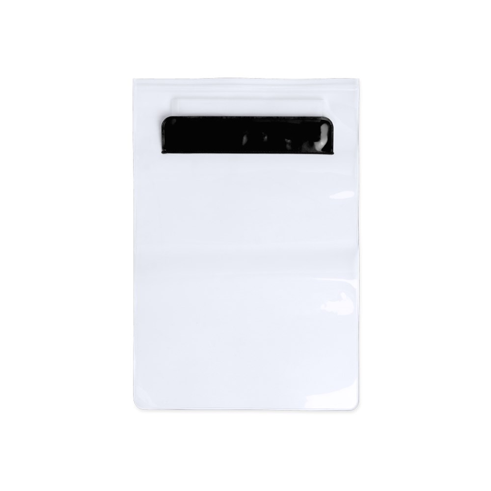 Praktische, waterdichte PVC-tas, speciaal ontworpen voor tablets tot 9,7 inch en met een dubbel veiligheidssysteem voor waterdichtheid. Met afdrukgebied aan de voorzijde in bijpassende kleur met bijgevoegde draagkoord accessoire. Door de pvc-hoes heen blijft touchscreen gewoon actief.