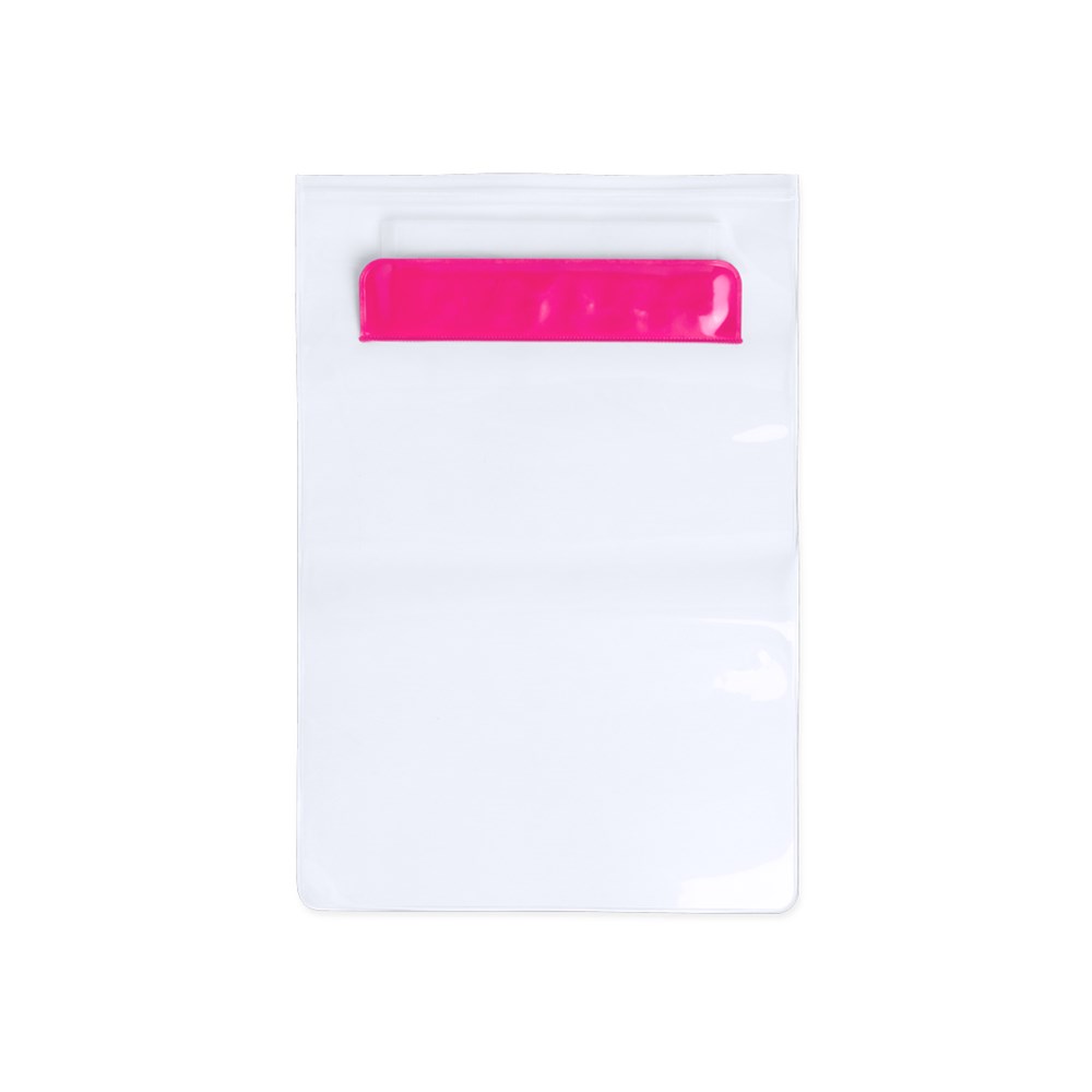 Praktische, waterdichte PVC-tas, speciaal ontworpen voor tablets tot 9,7 inch en met een dubbel veiligheidssysteem voor waterdichtheid. Met afdrukgebied aan de voorzijde in bijpassende kleur met bijgevoegde draagkoord accessoire. Door de pvc-hoes heen blijft touchscreen gewoon actief.