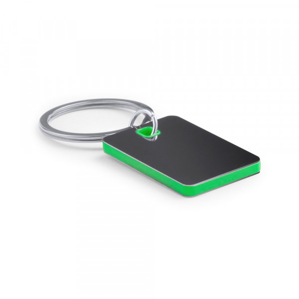 Sleutelhanger van roestvrij staal in tweekleurig design, in gevarieerde kleuren en speciaal ontworpen voor laserafdrukken.