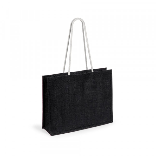 Jute zak in verschillende kleuren. Met lange, versterkte katoenen handgrepen van 70 cm in witte kleur. Gestikte afwerking en gewicht tot 10kg.