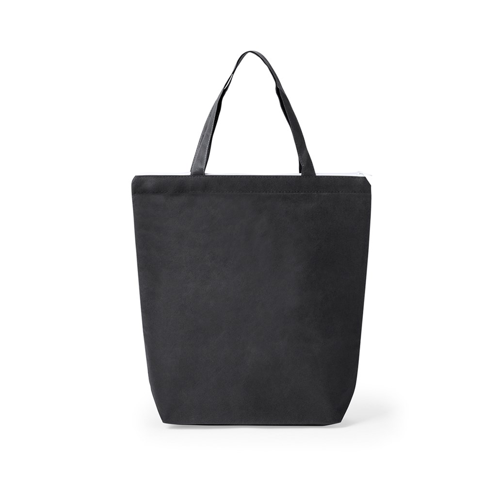 Non-woven tas van 90 g / m2 in diverse kleuren. Met witte kleur ritssluiting, inzetstukken, middelgrote handgrepen van 45 cm en een gestikte afwerking. Gewicht tot 6 kg.