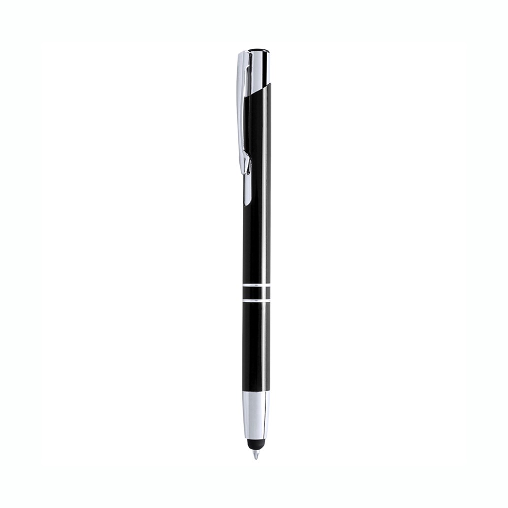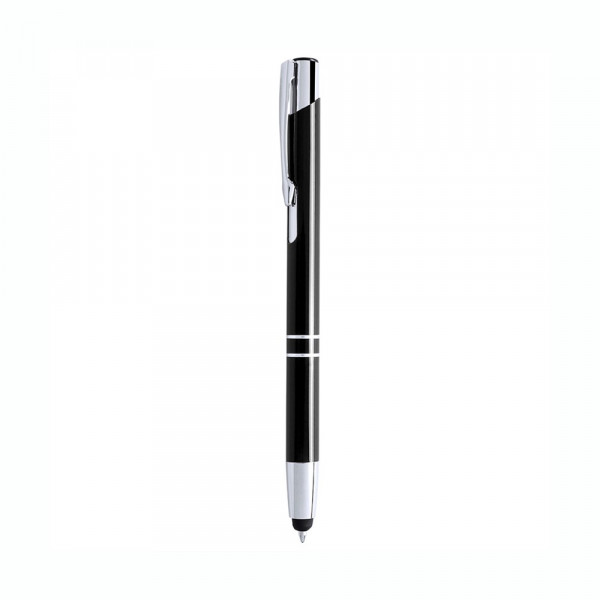 Stylus balpen met push-up mechanisme in vrolijke kleuren. Heeft een glanzende aluminium afwerking, met jumbo inktpatroon en blauwe inkt.