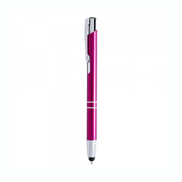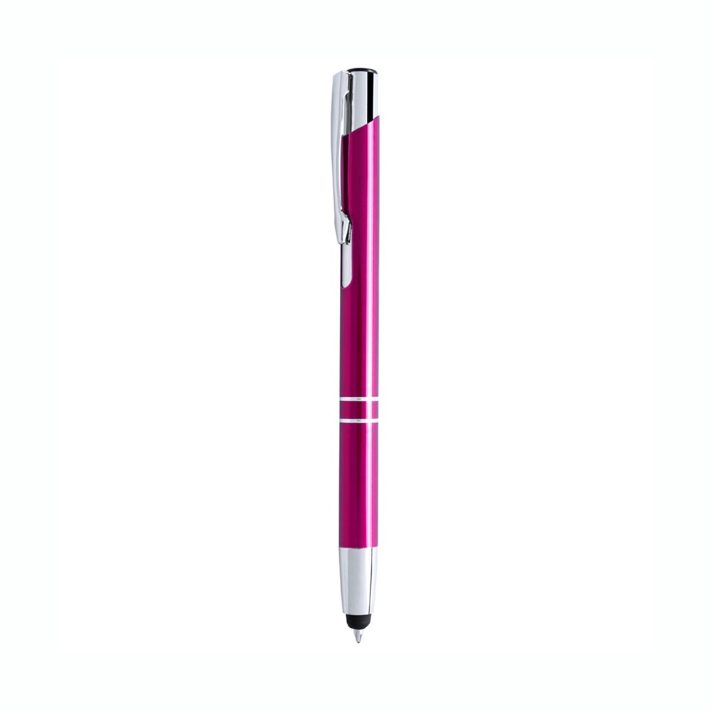 Stylus balpen met push-up mechanisme in vrolijke kleuren. Heeft een glanzende aluminium afwerking, met jumbo inktpatroon en blauwe inkt.