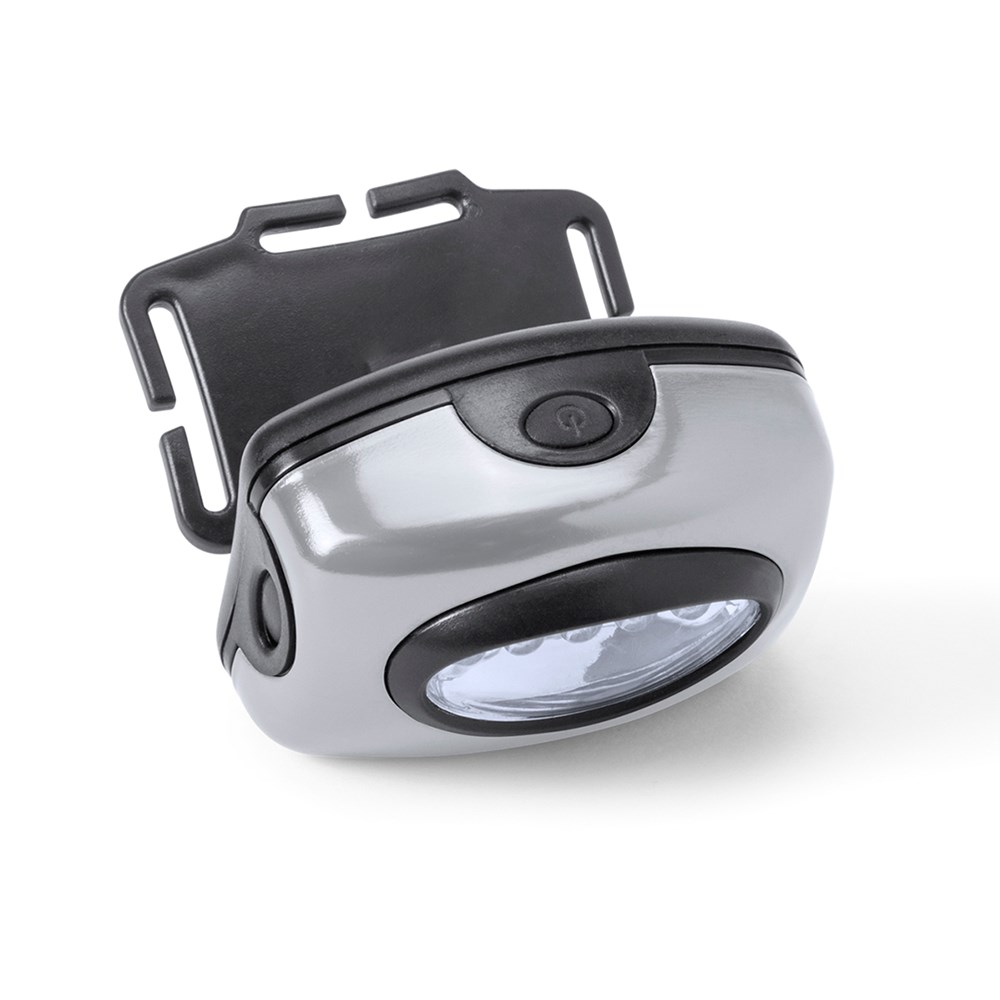 5 LED-zaklamp met drie verlichtingsvarianten. Comfortabele, elastische,verstelbare en afneembare band en body van stevig materiaal in diverse kleuren. Batterij: 3 x AAA niet inbegrepen. Gepresenteerd in een individuele verzilverde doos met beschermtas.