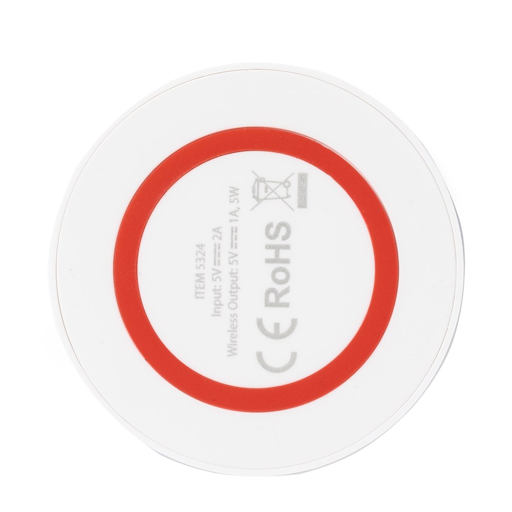Gekleurde, ronde, draadloze oplader met QI-technologie. Met anti-slip onderzjide en LED-licht voor laadstatus. Beschikbaar voor smartphones met een Android-besturingssysteem en gepresenteerd in een aantrekkelijke designdoos.