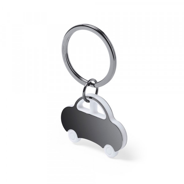 Auto sleutelhanger in tweekleurig design met roestvrij stalen behuizing in 4 kleuren.meer