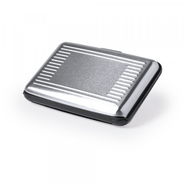 Kaarthouder met RFID (Radio Frequency Identification) beveiligingstechnologie die kaartgegevens beveiligt. Stevig aluminium ontwerp, met 6 compartimenten en een effen oppervlak aan de buitenkant ontworpen voor laser gravering.