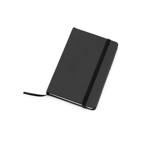 Notitieboek van PU-leer in diverse kleuren. 100 blanco bladzijden, met elastische band en bladwijzer in bijpassende kleur.