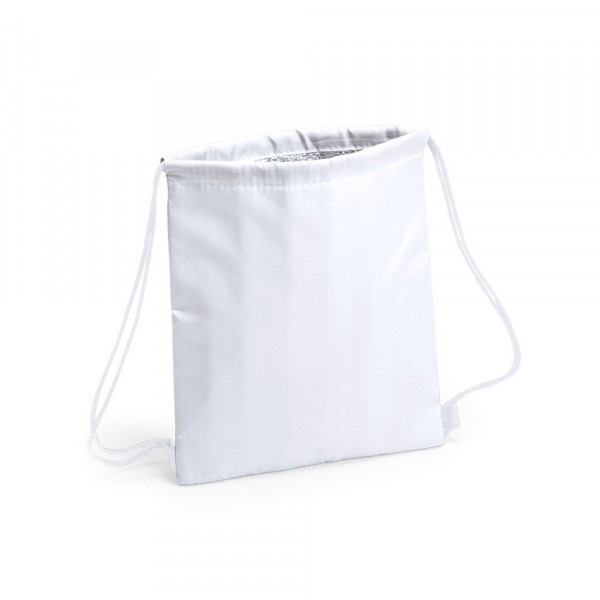 Koelrugzak voor kinderen van zacht polyester in vrolijke kleuren. Met zwarte zelfsluitende koorden en versterkte hoeken. Isothermische binnenkant met aluminium afwerking.
