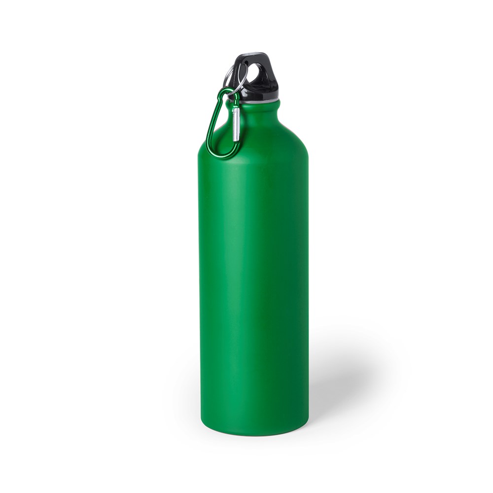 Aluminium vat met een inhoud van 800 ml. Met veiligheidsschroefdop en metalen karabijnhaak voor gemakkelijk transport. Originele matte afwerking en met een gevarieerd kleurenpalet. Individueel gepresenteerd in een designdoos.