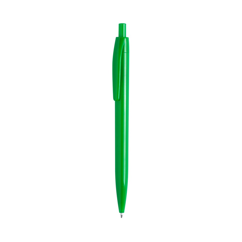 Balpen in verschillende kleuren met een glanzende afwerking. Blauwe inkt.