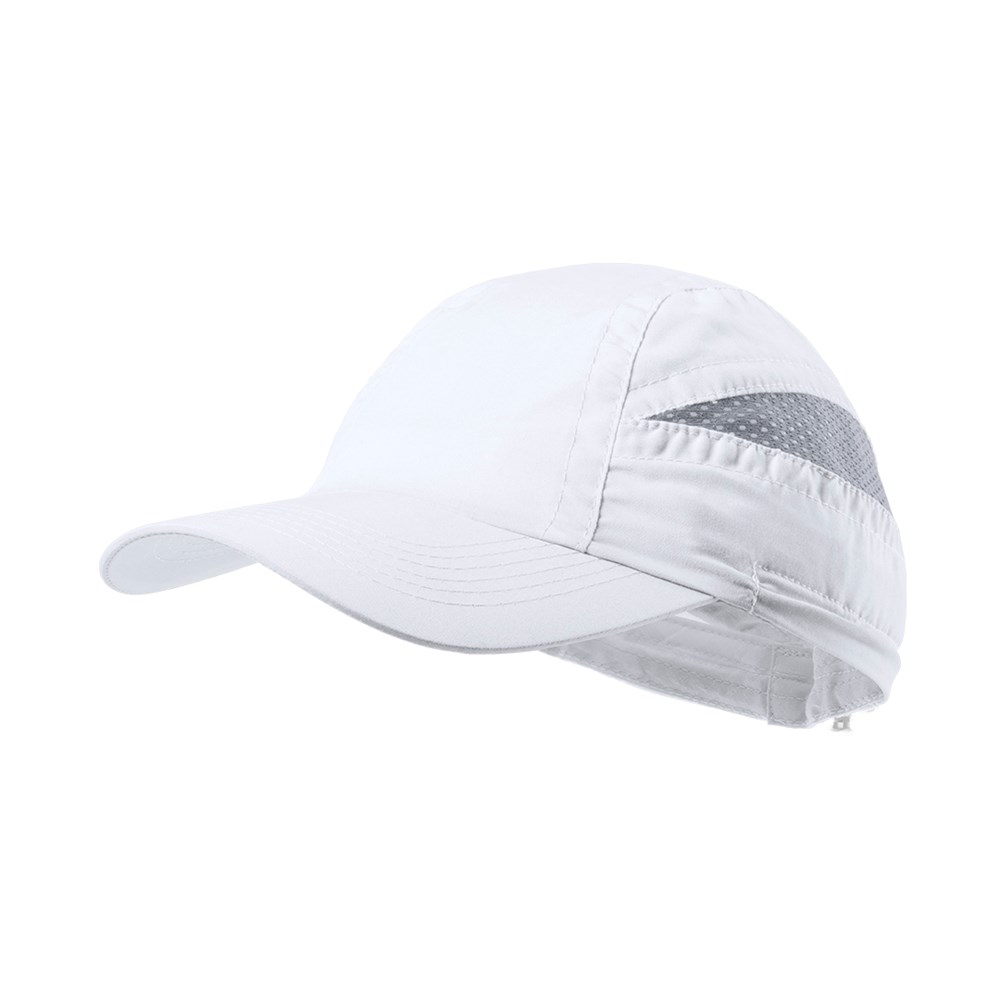 Sportieve pet met 7 panelen van zacht microfiber met tweekleurig design in levendige kleuren. Elastische sluiting met passend accessoire en mesh-panelen voor ventilatie.