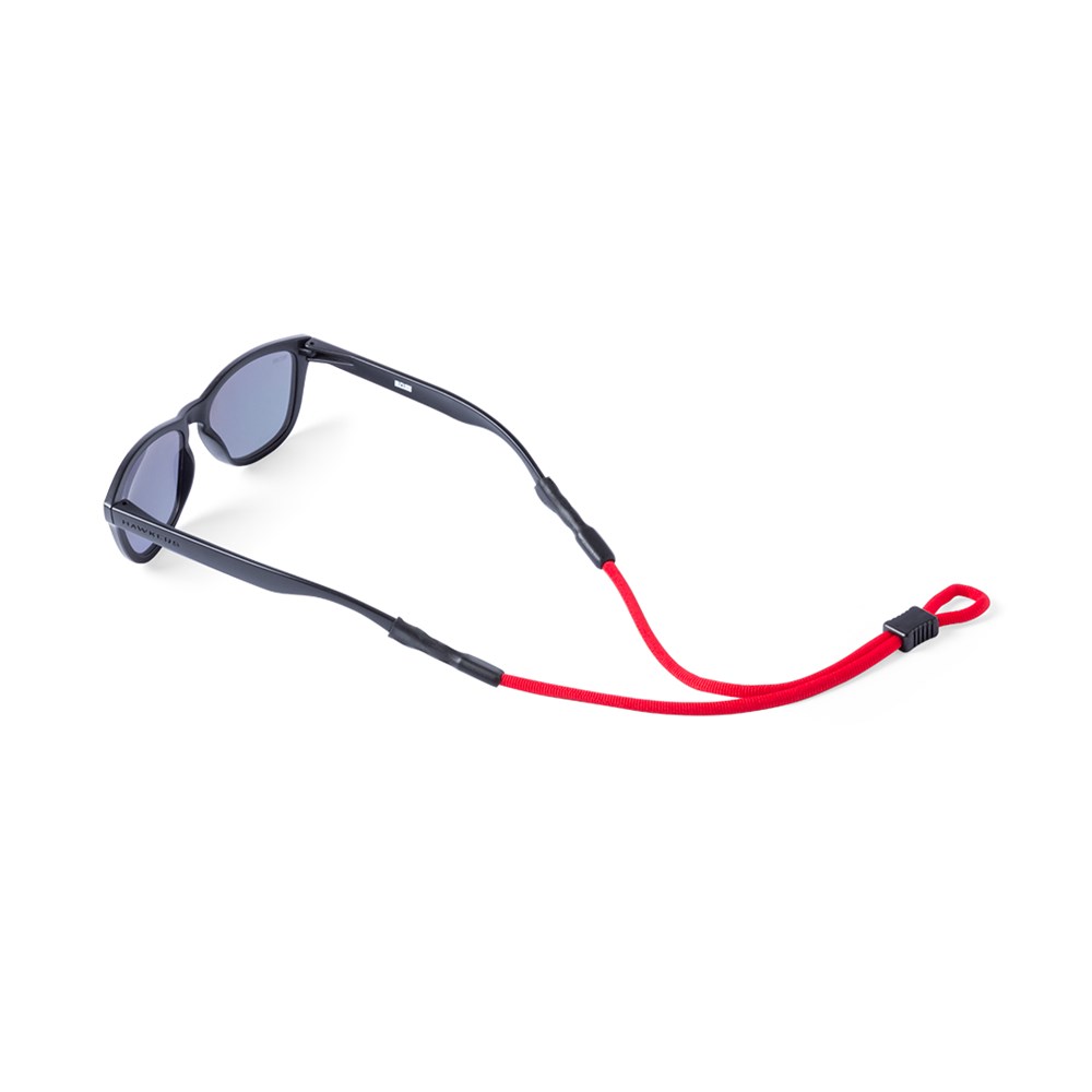 Origineel bandje voor brillen met veiligheidshaken voor alle soorten pootjes. In stevig, felgekleurd polyester. Veiligheidsaccessoire met glad oppervlak voor het bedrukken.