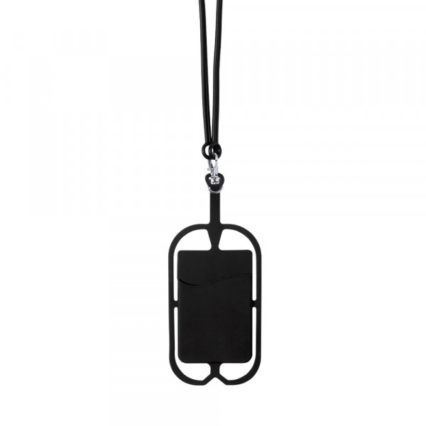 Praktisch en comfortabel siliconen lanyard in diverse kleuren met ingebouwde smartphonehouder en kaartvak. Met verstelaccessoire en karabijnhaaksluiting. Dit artikel kan alleen in 1 kleur (zwart/wit) worden bedrukt.