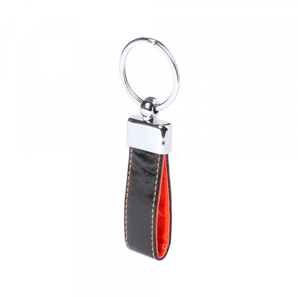 Sleutelhanger in elegante steekleurige PU-lederen afwerking met metalen accessoire. Gepresenteerd in een gestanste verpakking.