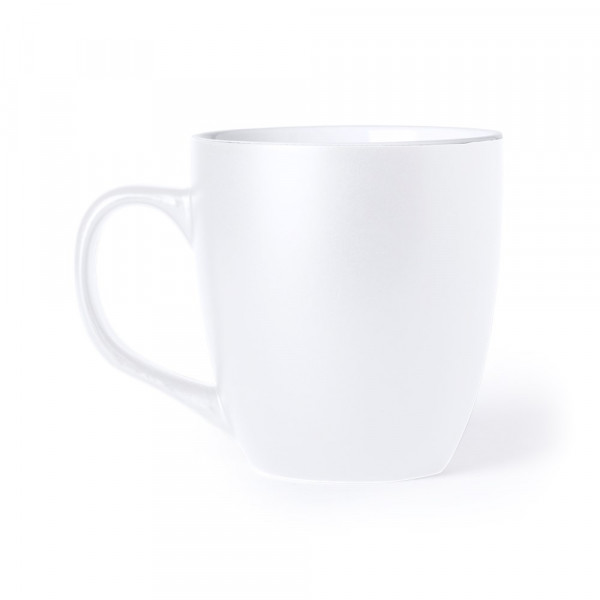 Keramische mok van 470 ml met buitenkant verkrijgbaar in verschillende kleuren en van binnen in wit. Gepresenteerd in een individuele doos.