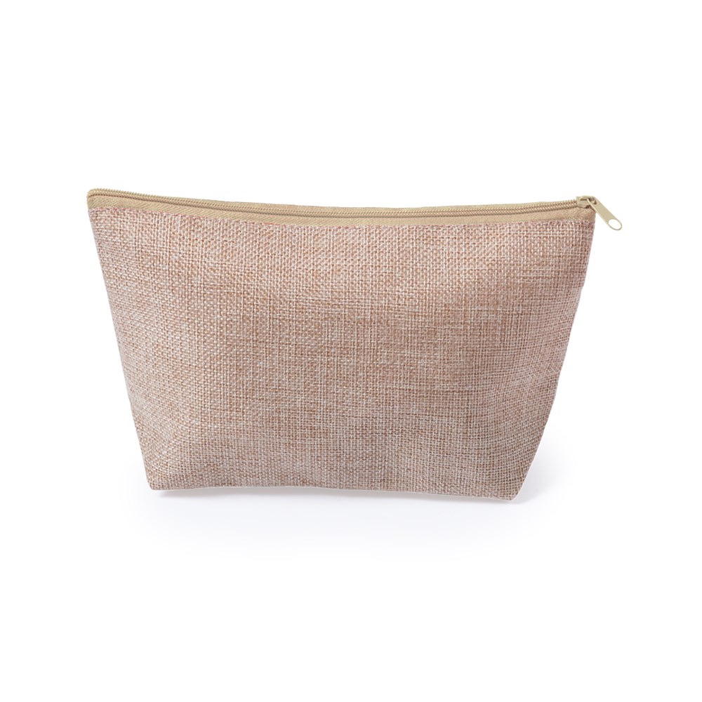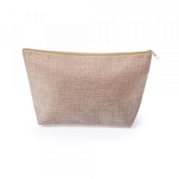 Multifunctionele make-uptas van polyester met tweekleurige afwerking en ritssluiting in verschillende kleuren en handvat in bijpassende kleur.
