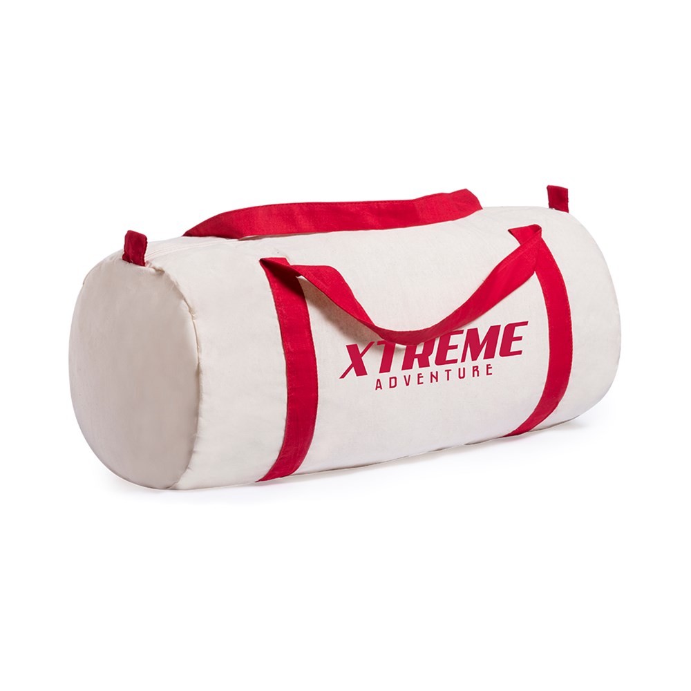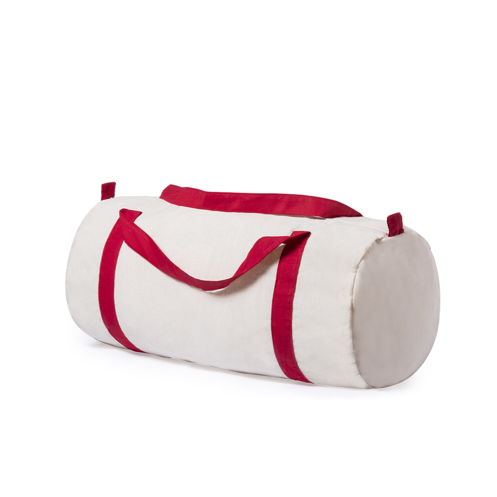 Tas van katoen met een natuurlijke kleur afwerking. Met versterkte, katoenen schouderhandvaten rond de tas in verschillende kleuren. Met ritssluiting.