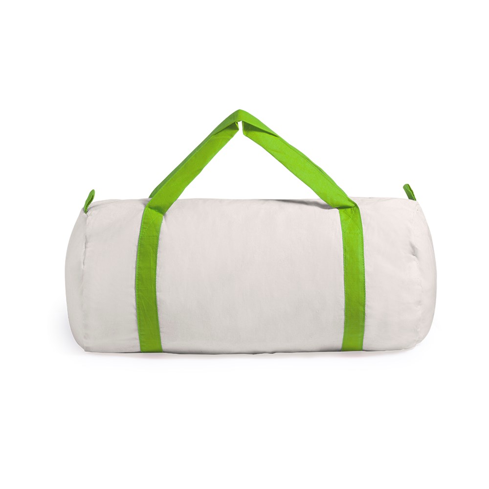 Tas van katoen met een natuurlijke kleur afwerking. Met versterkte, katoenen schouderhandvaten rond de tas in verschillende kleuren. Met ritssluiting.