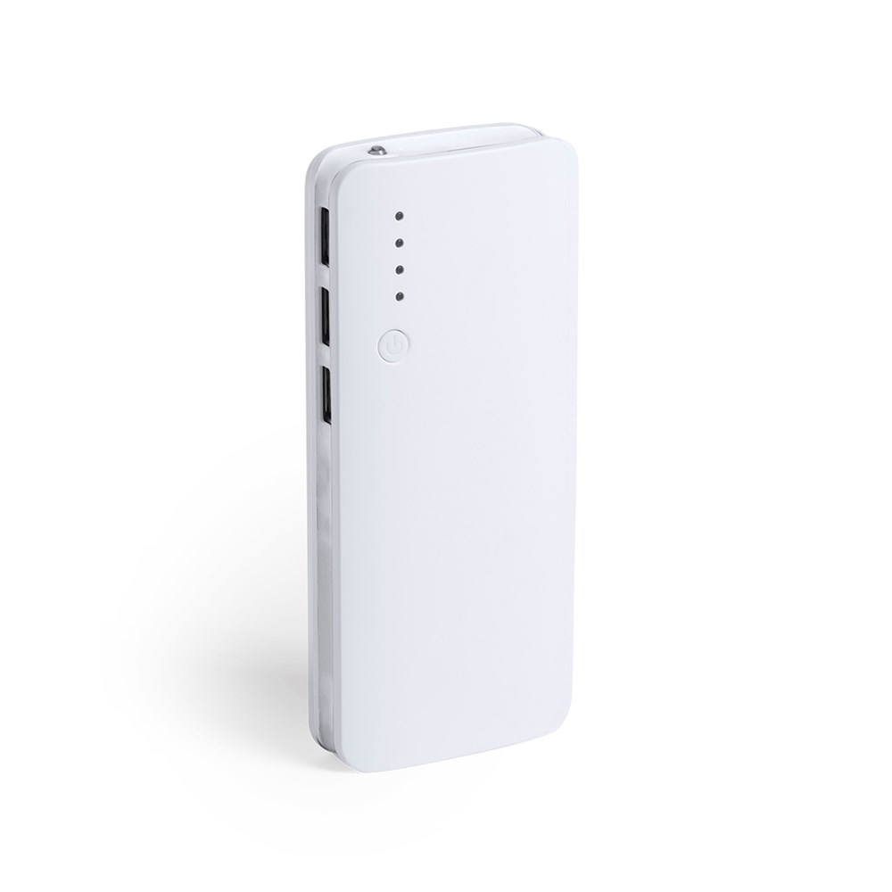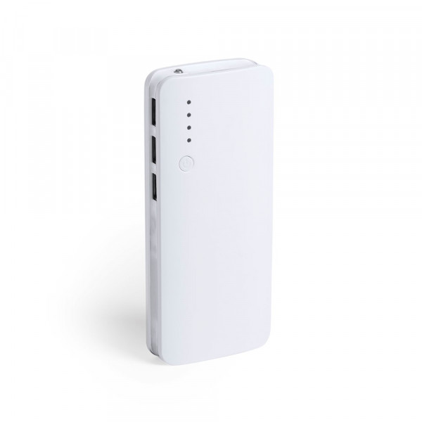 Externe hulpaccu met een grote oplaadcapaciteit -10.000 mAh-. Met drievoudige USB-uitgang om maximaal 3 apparaten tegelijk op te laden, oplaadstatusindicator-LED's, gebogen ontwerp met een witte behuizing en felgekleurde zijkanten, met een grote oppervlaktemarkering Gepresenteerd in een aantrekkelijke designdoos.De capaciteiten die worden weergegeven in al onze externe hulpbatterijen zijn reëel, ze bevatten allemaal klasse A en niet-gerecyclede batterijen, met een levensduur van minstens 500 oplaadcycli en volgens de CE-voorschriften. Bovendien zijn ze vervaardigd in overeenstemming met de RoHS-normen en in overeenstemming met de volgende veiligheidseisen: Powerbank-overbelastingsbeveiligingssysteem. Compleet ontladingsbeschermingssysteem dat zorgt voor een grotere duurzaamheid van de powerbank. Vergrendelingssysteem om kortsluiting te voorkomen. Systeem voor constante ladingoverdracht, afhankelijk van de capaciteit van het bestemmingsapparaat.