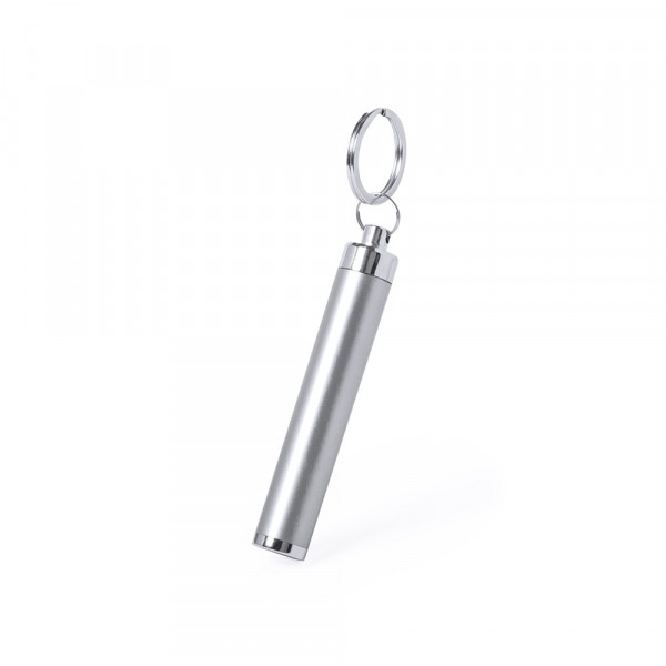 LED-sleutelhanger met zaklamp in gevarieerde kleuren met glanzende afwerking en met verlichte binnenkant. Buitenoppervlak speciaal ontworpen voor laserprinten om het gemarkeerde logo te verlichten. Knoopcel batterijen inbegrepen.