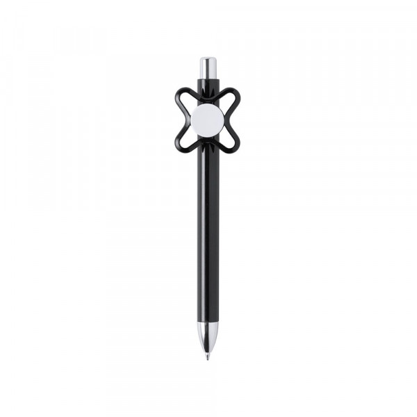 Antistress balpen met klik mechanisme. Ontwerp met accessoires in zilverkleur en een solide houder. Verkrijgbaar in verschillende kleuren. Speciaal ontworpen voor tampondruk op clip en houder. Jumbo vulling met blauwe inkt
