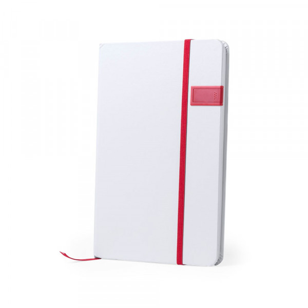 Notitieblok met 16GB USB stick in de cover van het boekje. Elastieken band, USB stick en bookmark lint. Inclusief 100 blanco paginas met gestreepte lijnen.