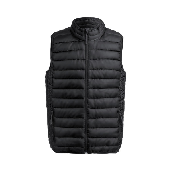 Vest van warm en zacht 100% polyester materiaal. Van extra licht, compact, waterafstotend en winddicht materiaal, met vulling aan de binnenkant. Ritssluiting met lint op het handvat en grote zijzakken. Nekrits met klep en zijzakken met handvatten praktische draagtas Verkrijgbaar in de maten S, M, L, XL, XXL.