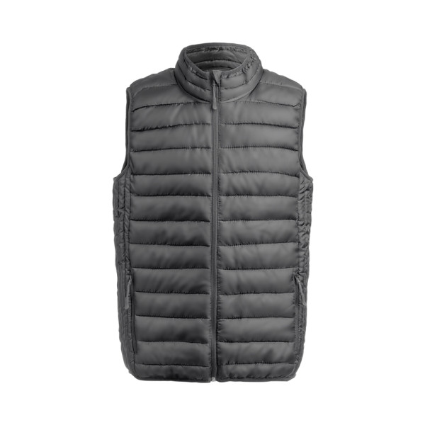 Vest van warm en zacht 100% polyester materiaal. Van extra licht, compact, waterafstotend en winddicht materiaal, met vulling aan de binnenkant. Ritssluiting met lint op het handvat en grote zijzakken. Nekrits met klep en zijzakken met handvatten praktische draagtas Verkrijgbaar in de maten S, M, L, XL, XXL.