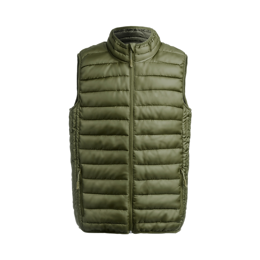 Vest van warm en zacht 100% polyester materiaal. Van extra licht, compact, waterafstotend en winddicht materiaal, met vulling aan de binnenkant. Ritssluiting met lint op het handvat en grote zijzakken. Nekrits met klep en zijzakken met handvatten praktische draagtas Verkrijgbaar in de maten S, M, L, XL, XXL.