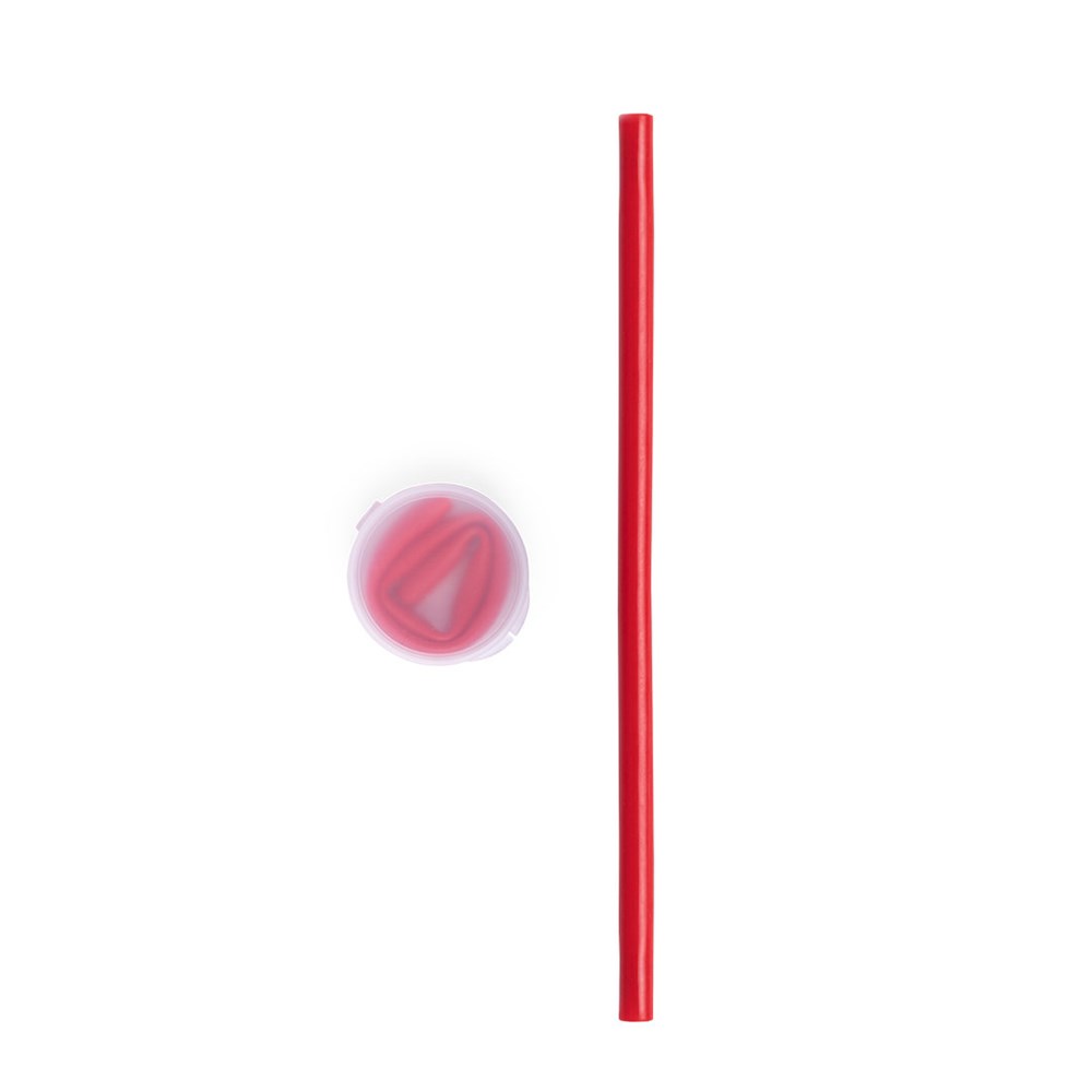 Flexibel en herbruikbaar siliconen rietje, 25,5 cm lang. Verkrijgbaar in een breed scala aan glimmende kleuren en gepresenteerd in een PP-hoesje met transparante afwerking.