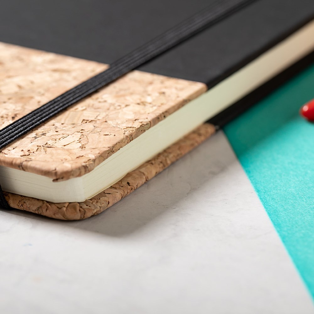 Nature line notitieblok in combinatie van natuurkurk met kunstleer met stevige omslagen. Met 100 gladde vellen met een naturel afwerking, elastische sluiting en bijpassende stoffen boekenlegger. Verkrijgbaar in een groot aantal kleuren.