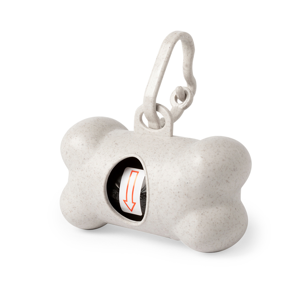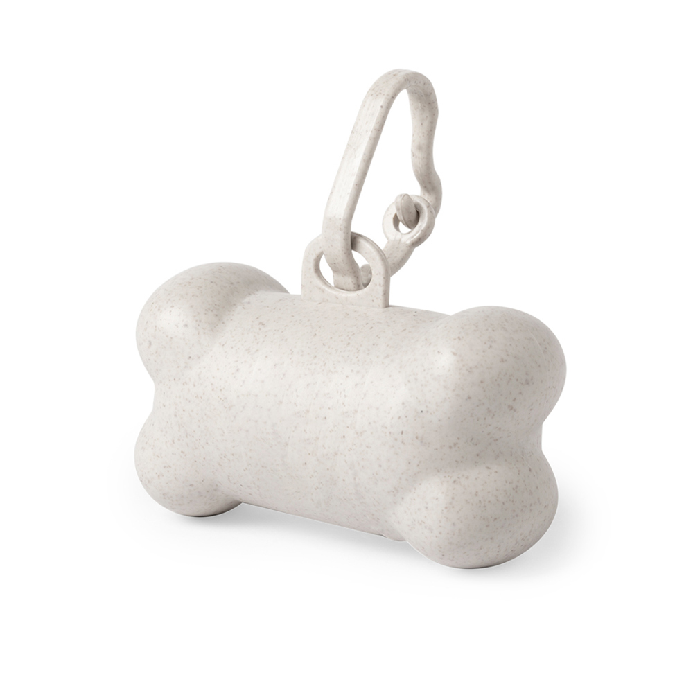 Dierenzakjesdispenser in natuurlijn, gemaakt van bamboevezel. Met resistent lichaams- en beenderdesign, bijpassende kleurendrager en 15 biologisch afbreekbare zakjes inbegrepen.