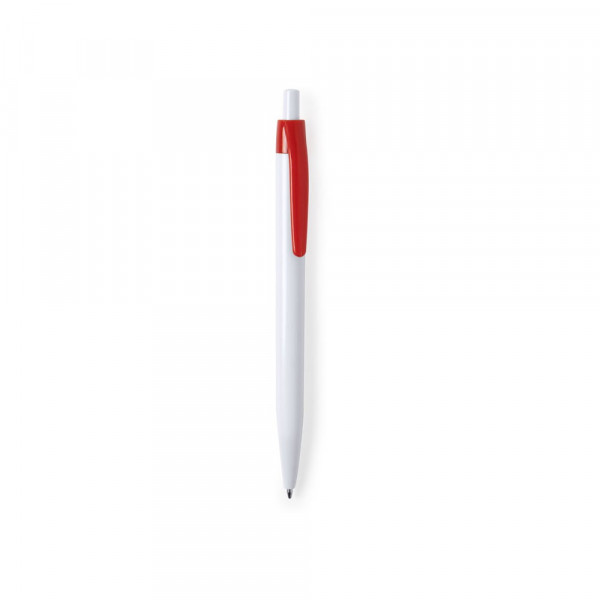 Balpen met push-up mechanisme in een opvallend, tweekleurig ontwerp. Lichaam in witte kleur en clip in een breed scala van kleuren. Breed afdrukgebied en navulling met blauwe inkt.