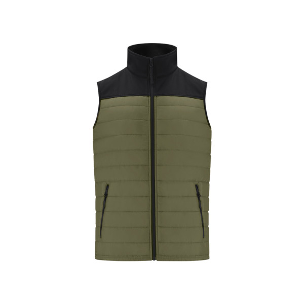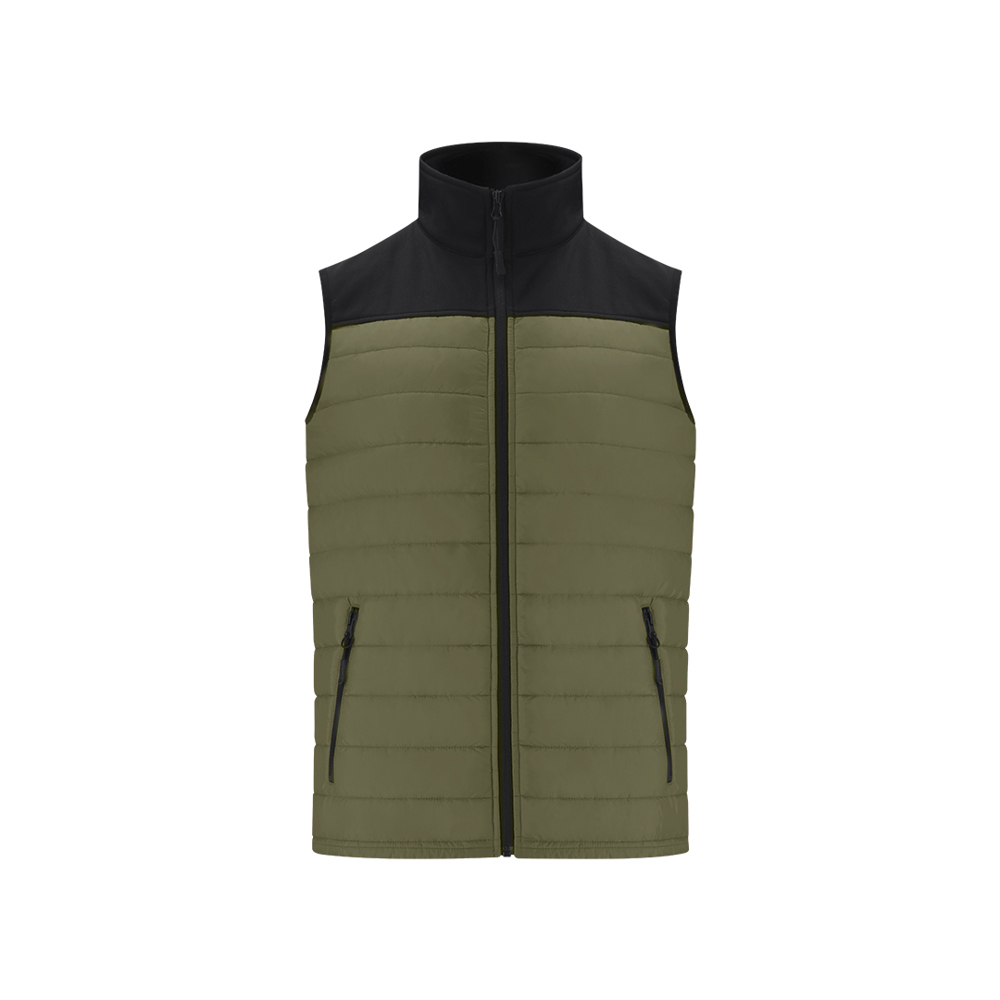 Waterdicht en ademend vest in combinatie met soft shell en polyester materialen. In een elegante zwarte kleurconstructie, met ritssluiting en zijzakken met rits, met trekkers voor gemakkelijk openen. Verkrijgbaar in de maten S, M, L, XL, XXL.