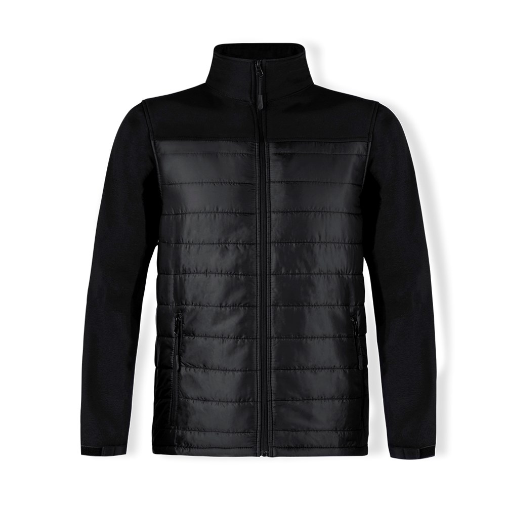 Waterdicht en ademend jack in combinatie met soft shell en polyester materialen. In een elegante zwarte kleurconstructie, met ritssluiting en zijzakken met rits, voor gemakkelijk openen. Verstelbare manchetten en verkrijgbaar in de maten S, M, L, XL, XXL.