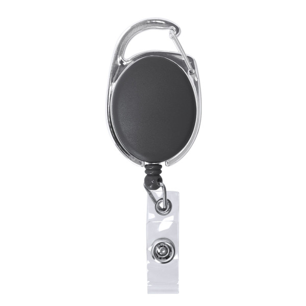 Verlengbare ID-houder in een sober design, met knoopsluiting accessoire voor ID en een uitschuifbaar mechanisme tot 75 cm lengte. Met metalen karabijnhaak en een breed afdrukgebied.