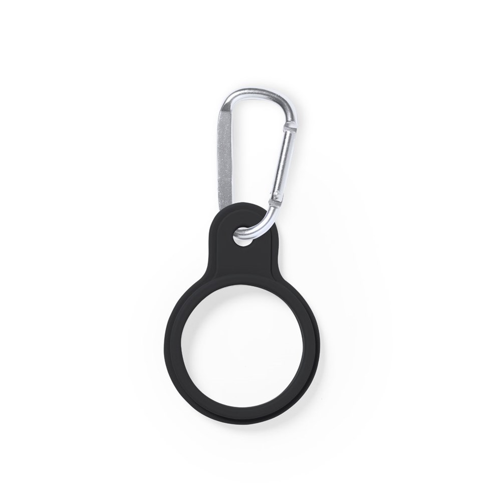 Originele hanger voor flessen. Gemaakt van resistent silicone, met draagkarabijnhaak van aluminium. Verkrijgbaar in een groot aantal kleuren, met een vlakke zijde voor bedrukking.Handleiding beschikbaar in het Spaans en Engels.