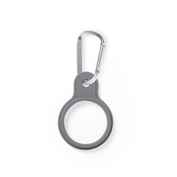 Originele hanger voor flessen. Gemaakt van resistent silicone, met draagkarabijnhaak van aluminium. Verkrijgbaar in een groot aantal kleuren, met een vlakke zijde voor bedrukking.Handleiding beschikbaar in het Spaans en Engels.