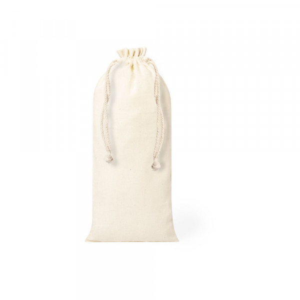 Natuurlijn tas van katoen 105g/m2. Maat 12x33 cm, met gestikte afwerking en zelfsluitende koorden van katoen. Speciaal vervaardigd voor het verpakken van flessen en thermosflessen.