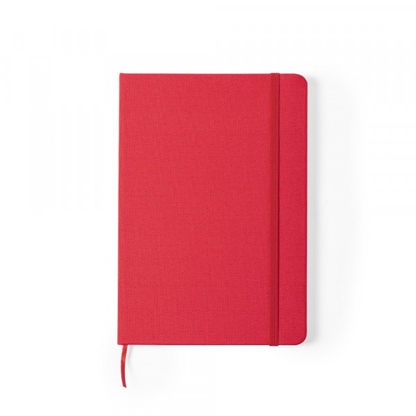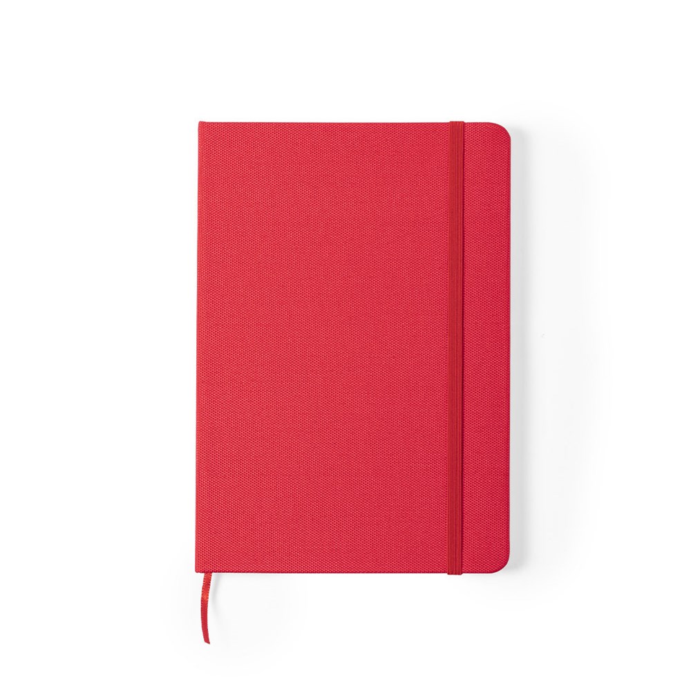 Natuurlijn notitieblok met harde kaft van 600D RPET, gemaakt van gerecycled plastic om het hergebruik van plastic afval te stimuleren en bij te dragen aan de duurzaamheid van de planeet. Verkrijgbaar in een breed assortiment kleuren, inclusief 80 single-stripe vellen. Met elastische band en bijpassende stoffen bladwijzers. RPET-badge op de achterkant.