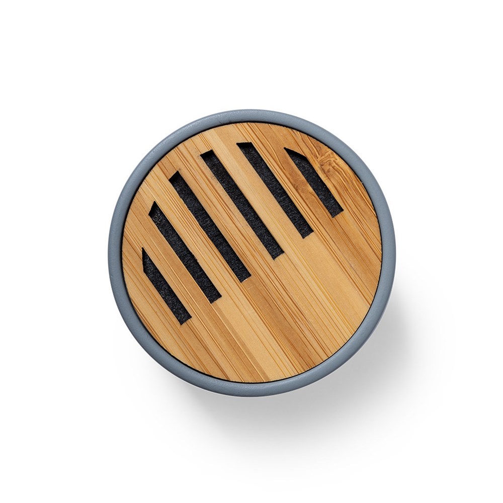 Bluetooth-luidspreker in combinatie met natuurlijke gesneden bamboestukken en kalksteencement, een conglomeraat gevormd door de combinatie van natuurlijke materialen, voornamelijk gemalen kalksteen en water, waardoor een materiaal met een grote consistentie en duurzaamheid wordt verkregen.Compacte afmetingen, met Bluetooth® 5.0 aansluiting en 3W vermogen. Compatibel met iOS en Android, inclusief micro-USB-oplaadkabel en wordt geleverd in een aantrekkelijke designbox. Spaanse en Engelse handleiding beschikbaar.