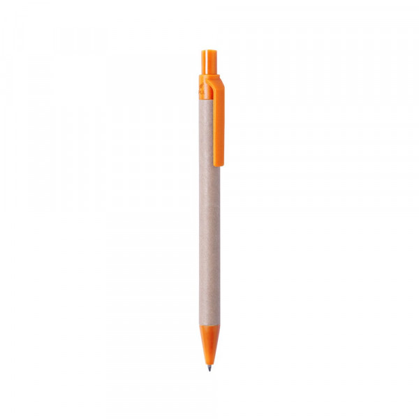 Natuurlijn balpen met opdrukmechanisme. Combinatie van een body van gerecycled karton in natuurlijke kleur en accessoires van PLA -PolyLactic Acid-, dat wordt verkregen uit 100% natuurlijke grondstoffen zoals maïszetmeel, yucca of suikerriet, en 100% composteerbaar is aan het einde van zijn levensduur. Verkrijgbaar in een brede waaier van kleuren, met blauwe inkt. PLA-logo op de bovenkant van de pen.