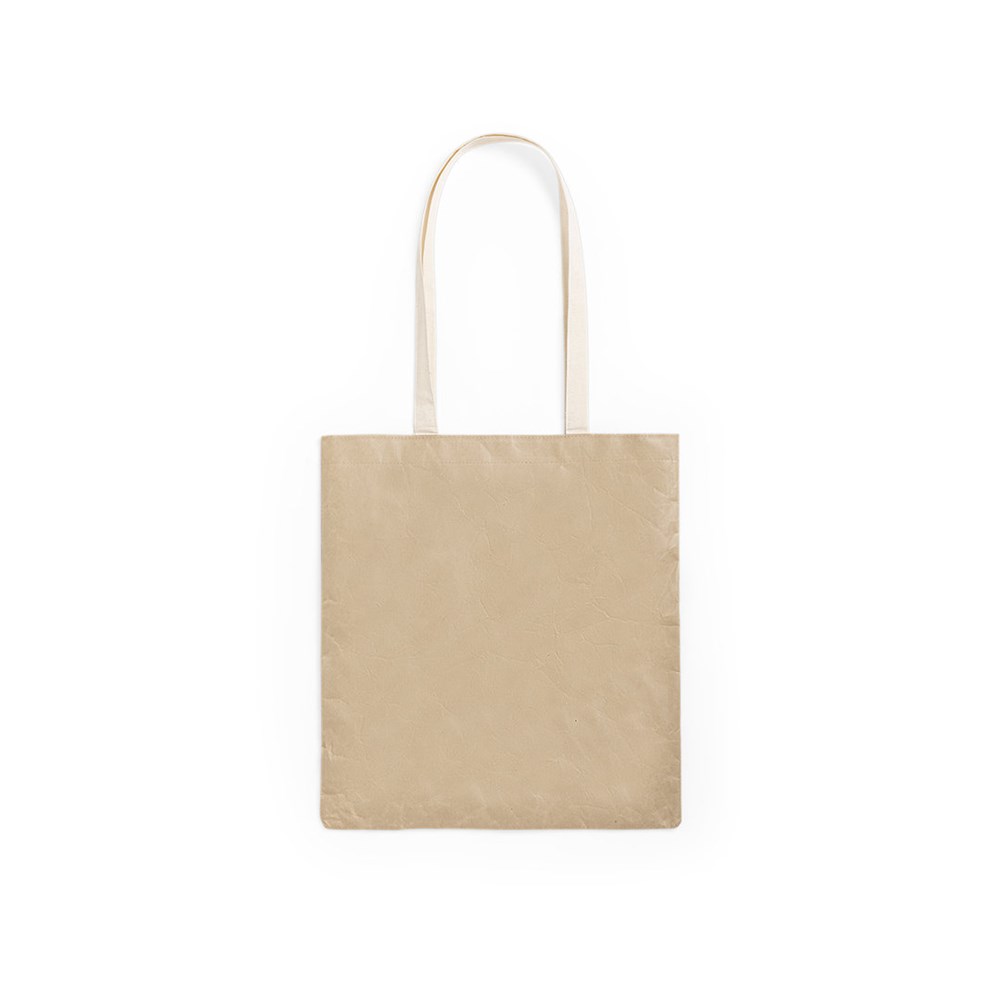 Natuurlijn zak van gelamineerd papier van 105g/m2, zeer bestendig. Lange katoenen handvaten in natuurlijke kleur. Gestikte afwerking en bestand tegen een gewicht tot 8 kg.