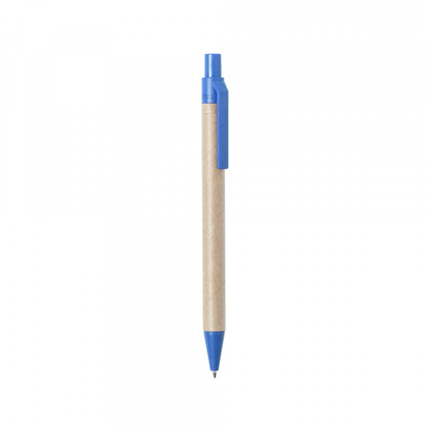 Natuurlijn balpen met push-up mechanisme. Combinatie van een lichaam van gerecycled karton in natuurlijke kleur en accessoires van tarwegriet en ABS , om het gebruik en de recycling van grondstoffen te bevorderen en zo de uitstoot van verontreinigende stoffen te verminderen. Beschikbaar in een brede waaier van kleuren, met blauwe inkt. Korenriet logo op de bovenkant van de pen.